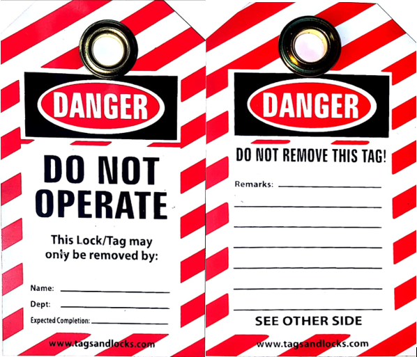 - These highly visible safety tags aid the safe running and maintenance of site machinery. Each Tag is manufactured from high impact styrene / flexible polyester – resistant to water, oil and extreme temperatures, ensuring it will withstand a multitude of weather and factory conditions / harshest environments. Safety Tags – Solve all your valve, equipment and accident prevention marking needs.